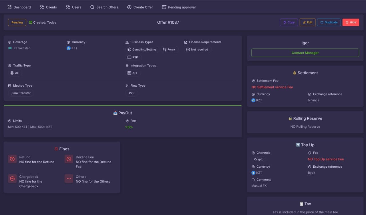 🇪🇺 Offer for Open Banking ℹ️ Only for iGaming, may review PSPs ℹ️ All Europe regions + Germany + Poland + United Kingdom 🟢 Fees for FTD 4,0% + €0,2 – for up to €500k per month 3,8% + €0,2 – from €500k to €1 million per month 3,5% + €0,2 – from €1 million